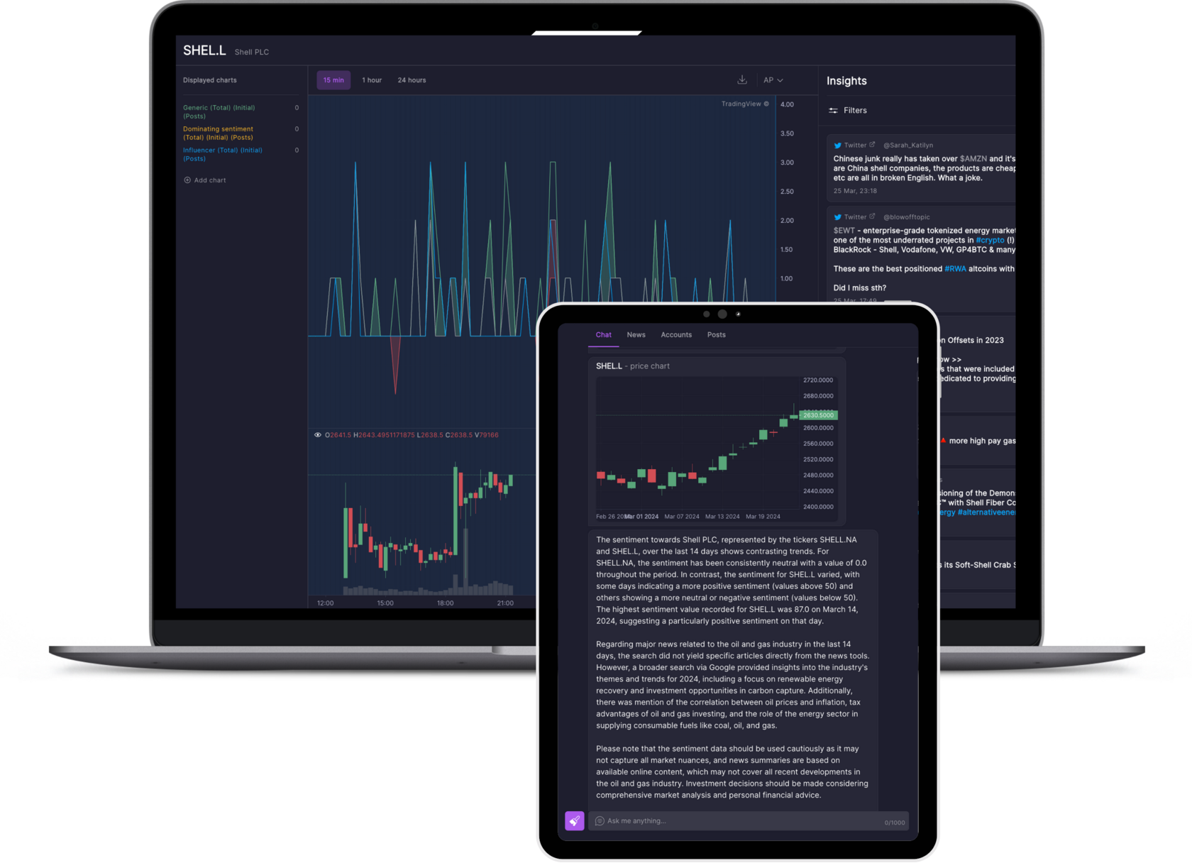 Our unique datasets track and quantify the impact of social media on thousands of assets and generate ALPHA providing a detailed analysis of activities of influencers, financial professionals, retail investors, and bots across social media platforms.